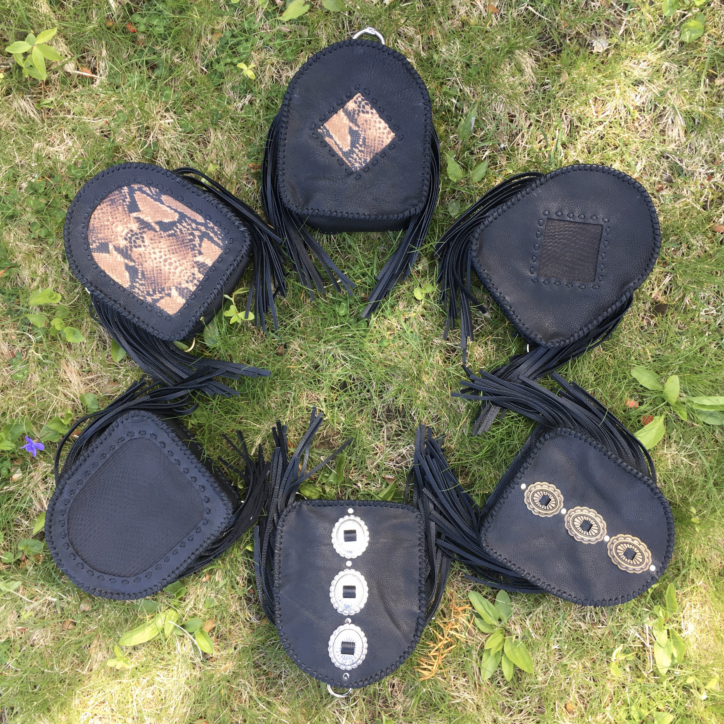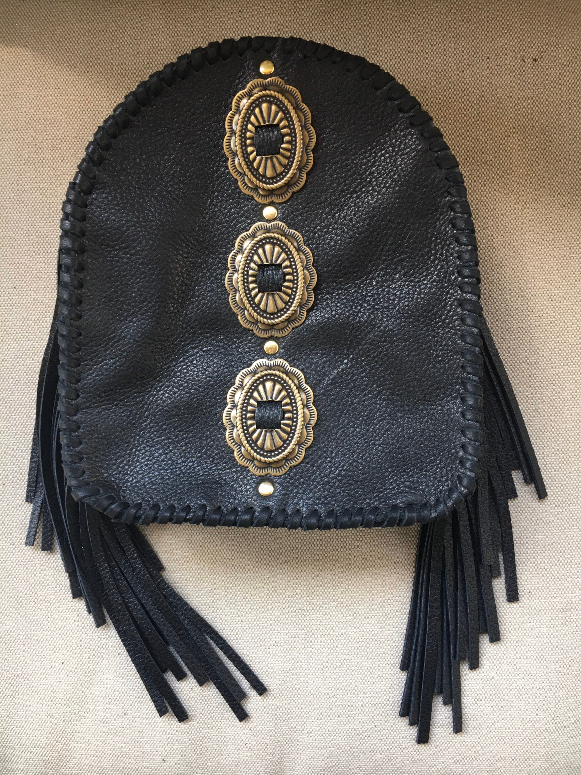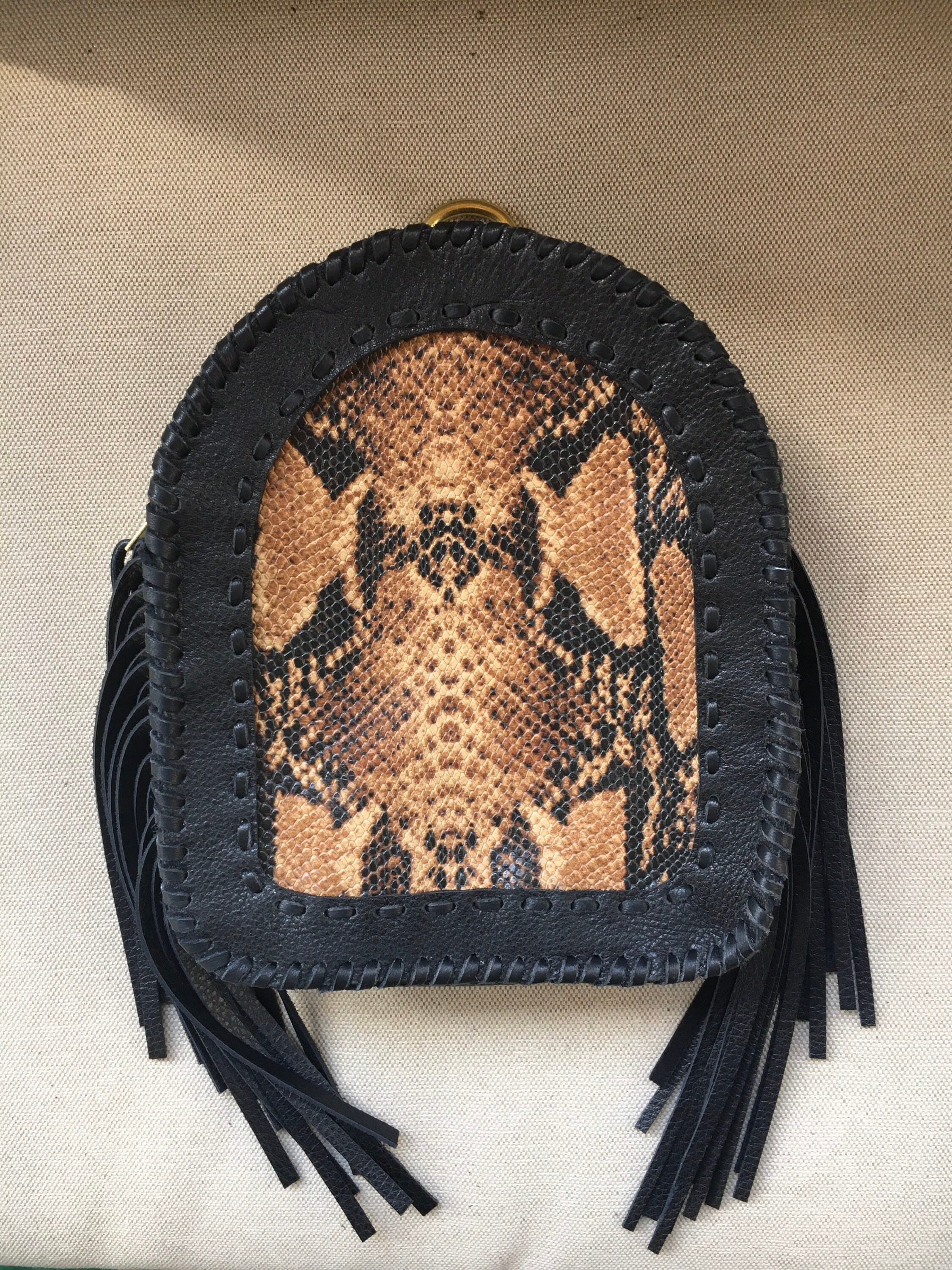 Each backpack has 6 inches of side fringe. Partially lined.